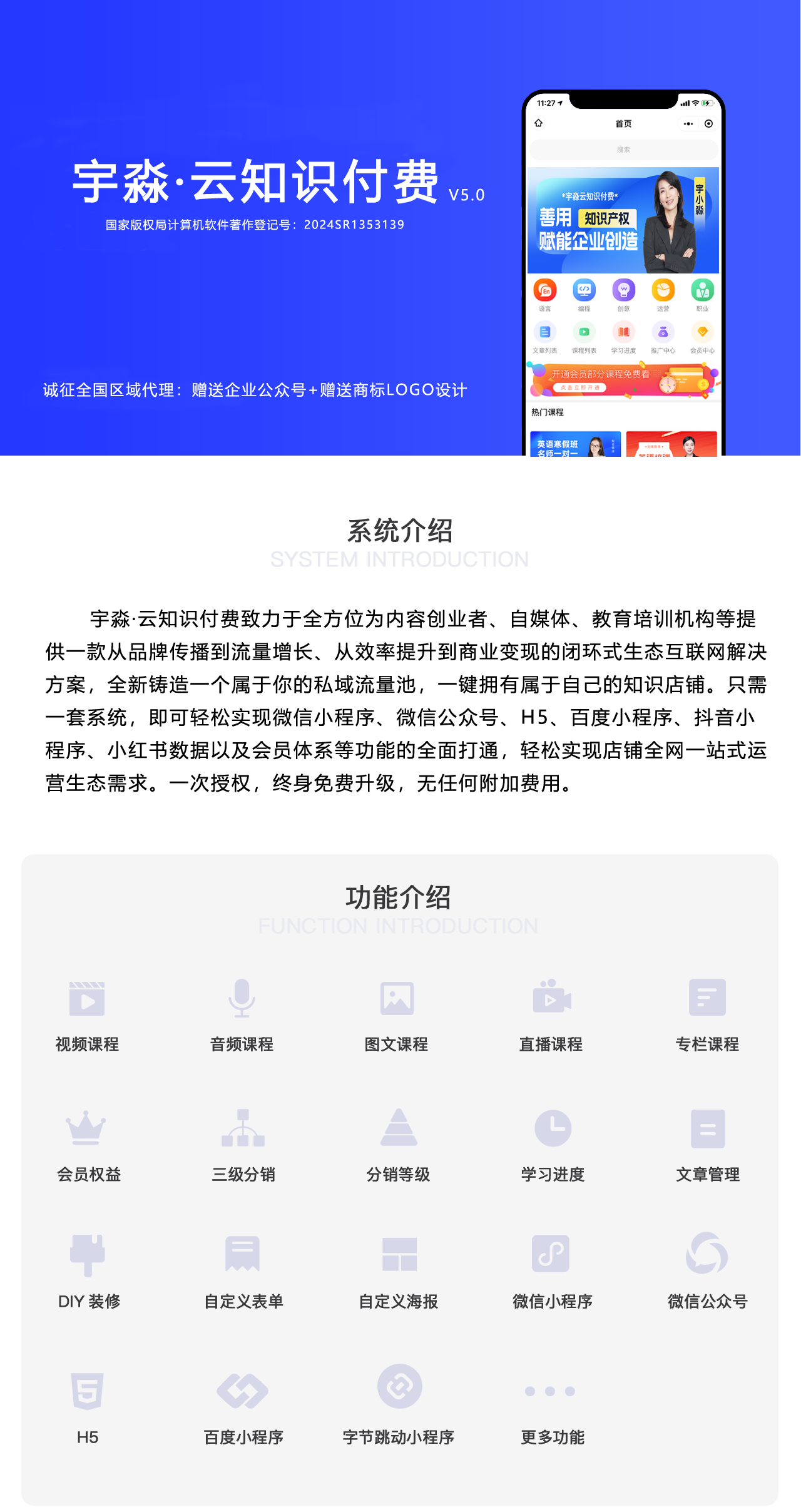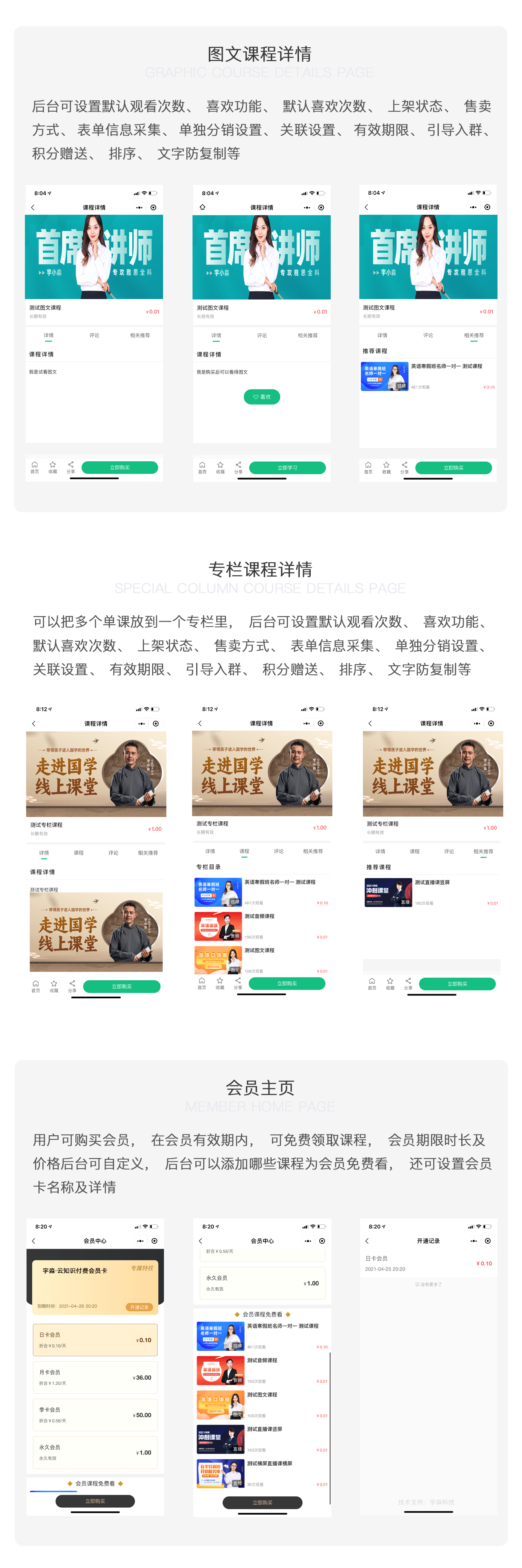 宇淼云知識付費管理系統(tǒng)功能介紹